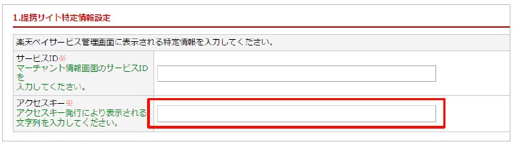 [手順1]でコピーしたアクセスキーをスマレジEC・リピートの決済モジュール設定 > アクセスキーに入力してください。