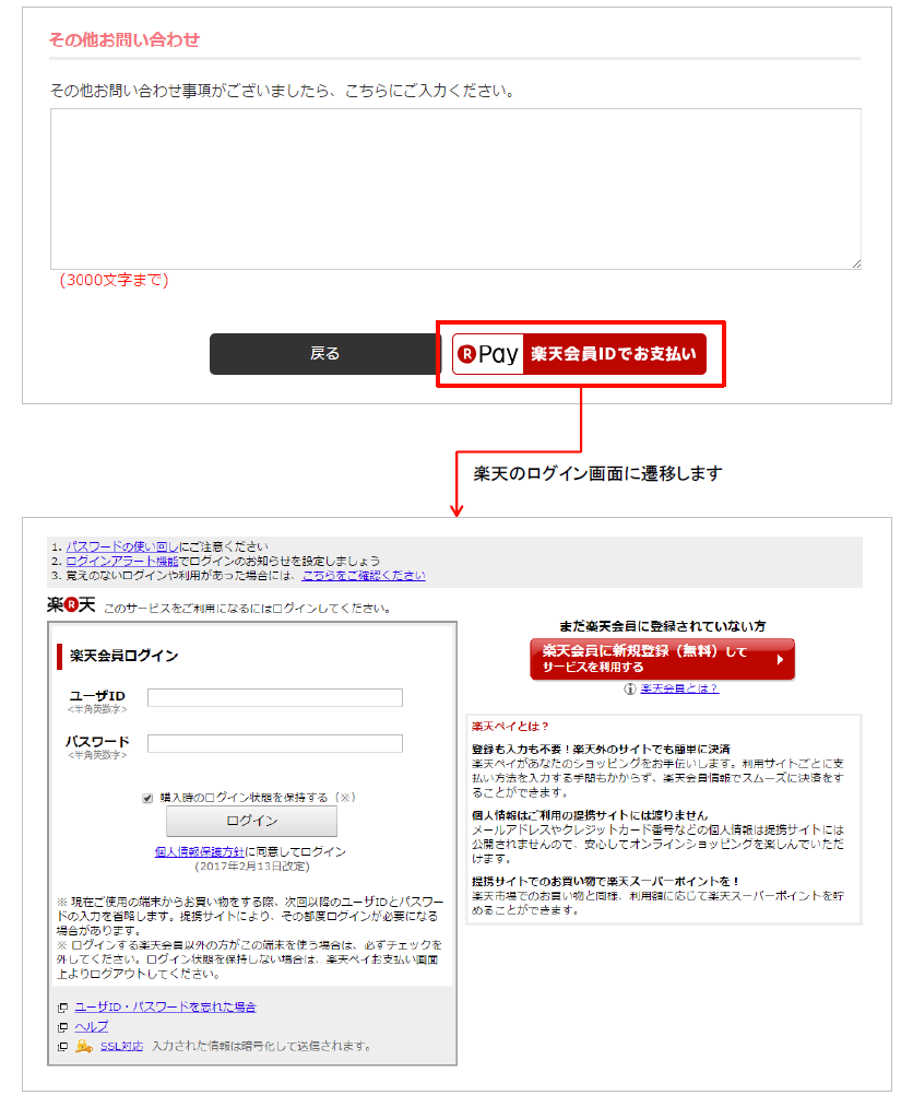 ご注文確認画面に【楽天会員IDでお支払い】ボタンが表示されます。