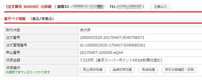 取引状態確認・反映 楽天ペイ側の決済情報を取得し、最新の取引状態に更新します。