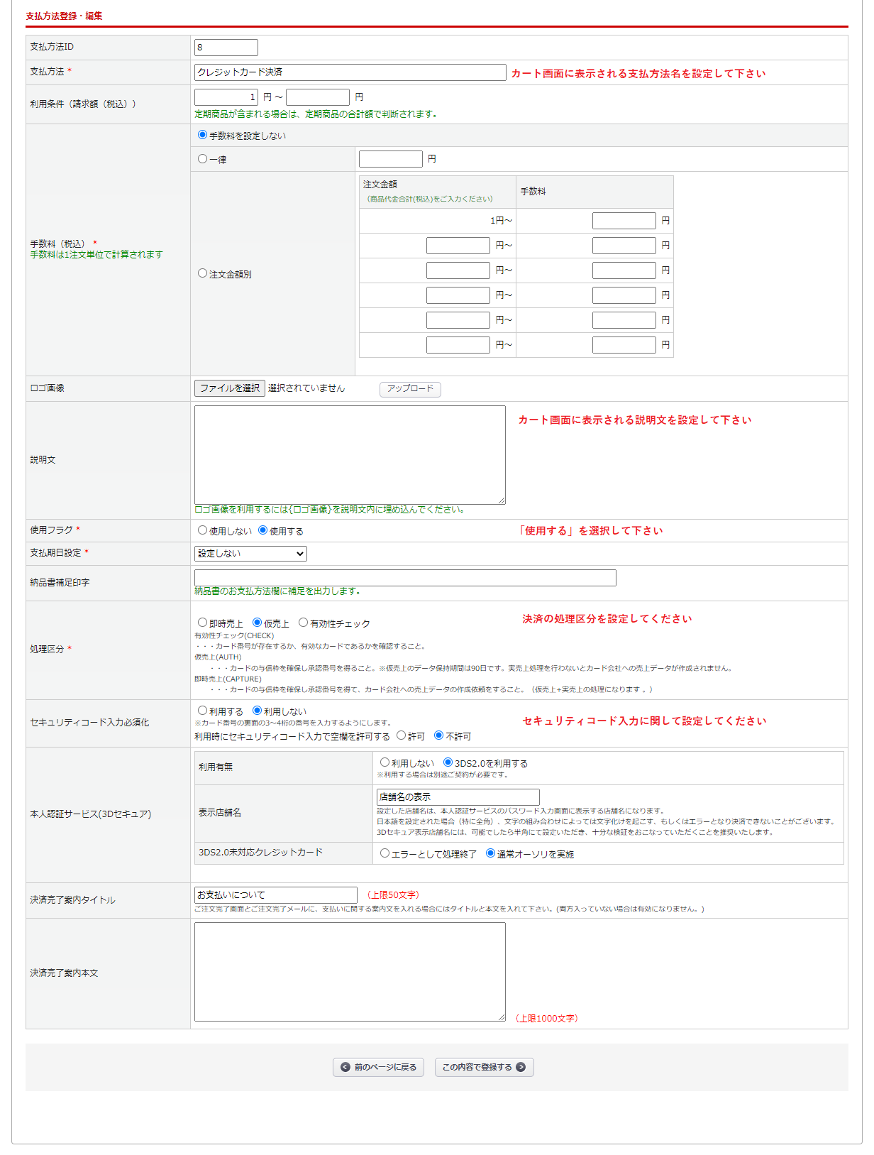 3Dセキュアに関する設定が行えます。詳細は<こちら>