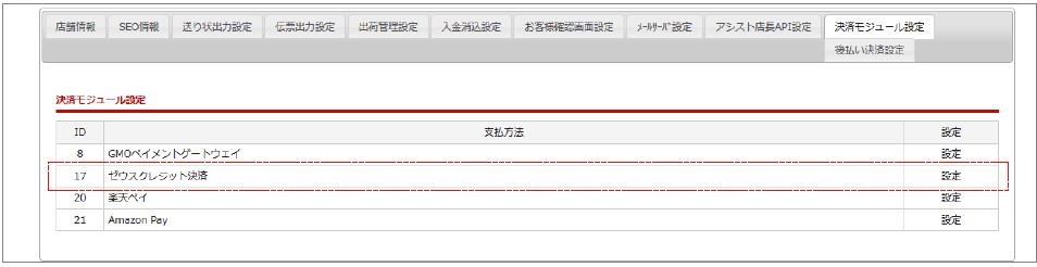 ID:27「ゼウスクレジット決済」編集より設定を実施します。