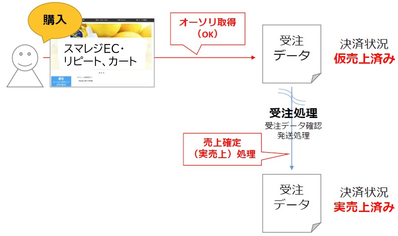 ※上記は処理の一例(※注文時の処理区分が仮売上、オーソリエラーは完了しない設定場合)です