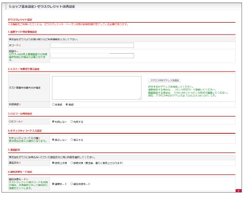 →利用承認が「未承認」状態の場合、指定したIPアドレス以外のアクセスの場合はゼウスカードを利用できなくする設定です。 - 疑似決済モード設定
