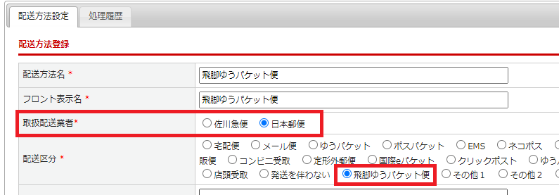 取扱配送業者について [日本郵便] にチェックをしてください。