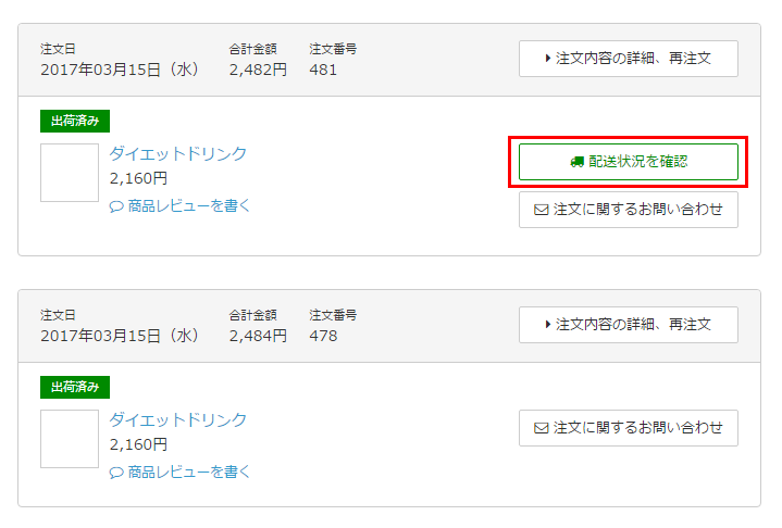 - MYページ > 購入履歴一覧に、「配送状況を確認」ボタンが表示されます。