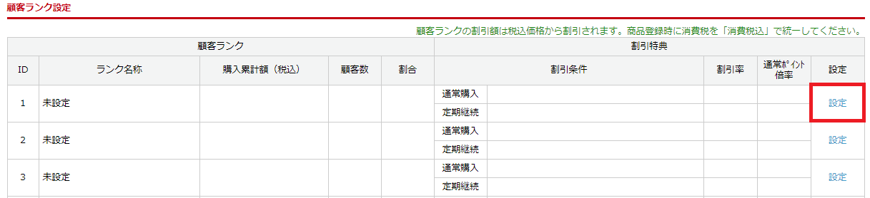 以下の内容で登録後、【顧客ランクを再設定する】ボタンをクリックすると、