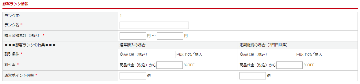 | ランク名* | ランクの名称を設定します。(例)シルバー、ゴールドなど |