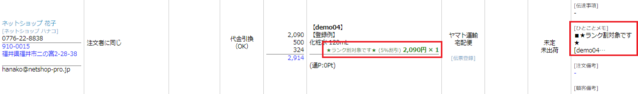 適用されている顧客ランク、その割引条件等の詳細が表示されます。