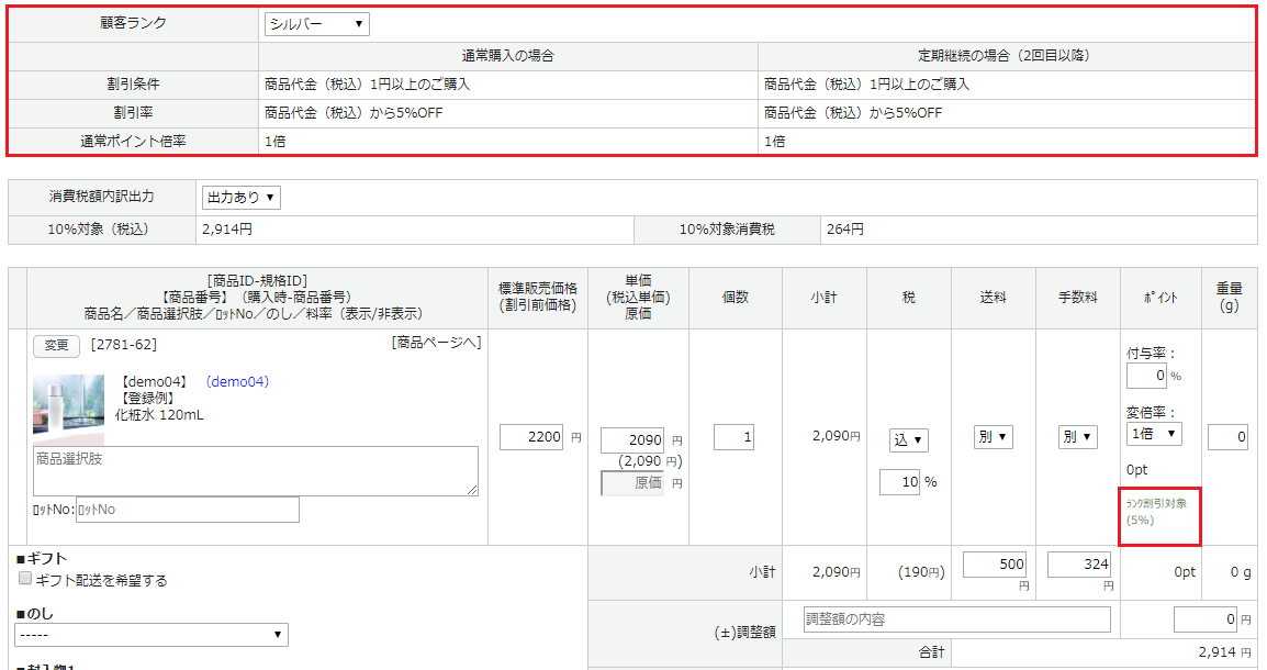 過去の購入累計額で適用されている顧客ランクで受注は作成されます。