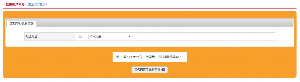 継続中の定期に絞り込み、一括更新パネルにて配送方法を変更してください。