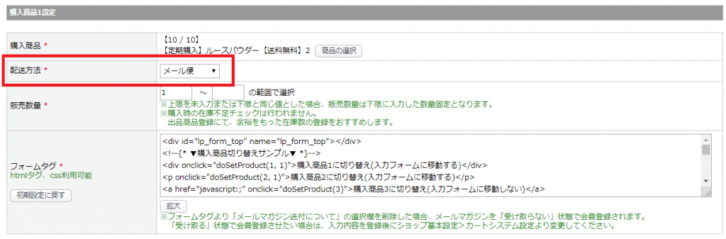 ※支払い方法は変更前の配送方法と同じ内容に設定してください。