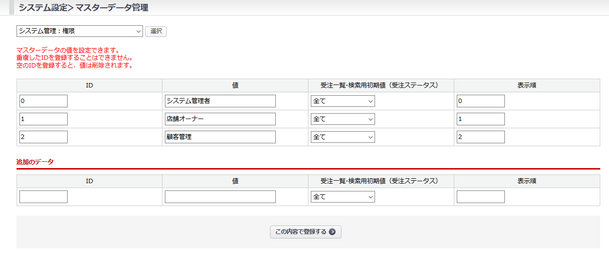 ・名前、ログインID:ASP会社名を登録すると管理しやすいです。
