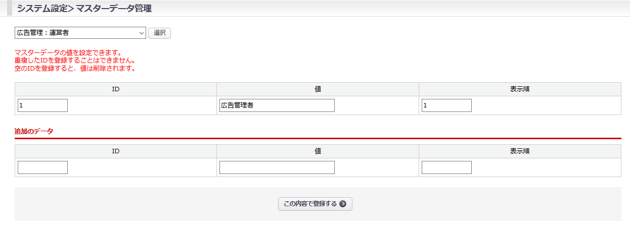 2.プルダウンから「広告管理:運営者」を選び、選択ボタンをクリック