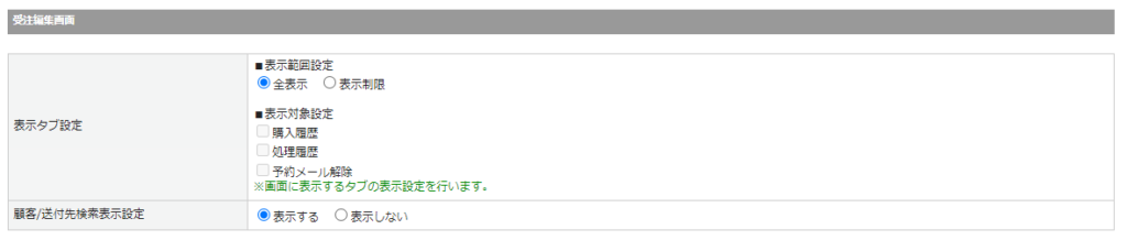 表示タブ設定 受注編集画面の表示タブを設定します。