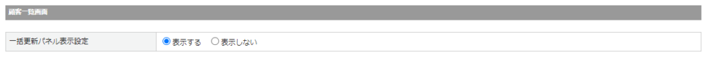 一括更新パネル表示設定 顧客一覧画面の一括更新パネルの表示を設定します。
