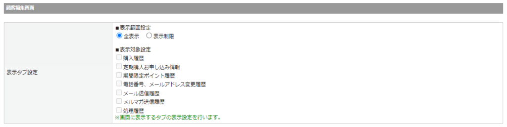 表示タブ設定 顧客編集画面の表示タブを設定します。