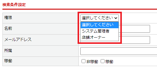 メニュー・ボタン権限* 設定したい権限をプルダウンから選択してください。