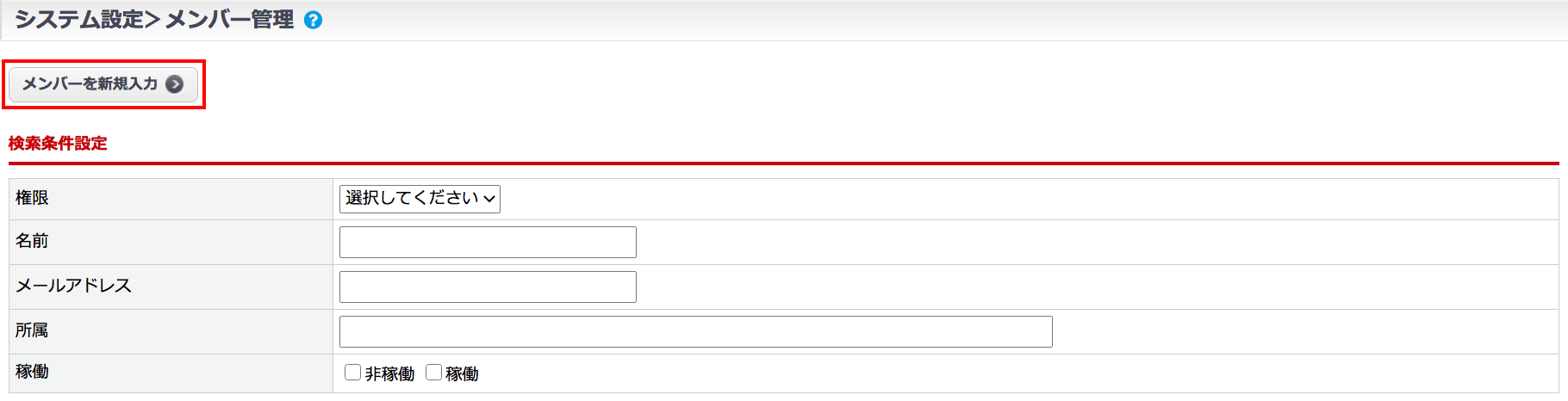 【メンバーを新規入力】ボタンから内容を登録してください。