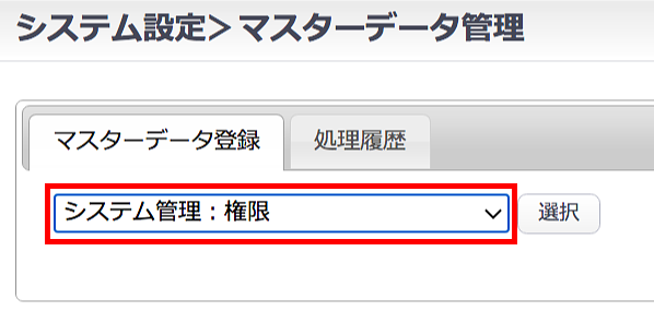 プルダウンから「システム管理:権限」を選択し、【選択】ボタンをクリックします。