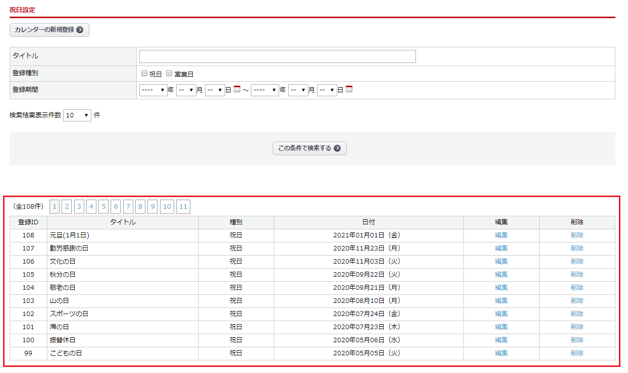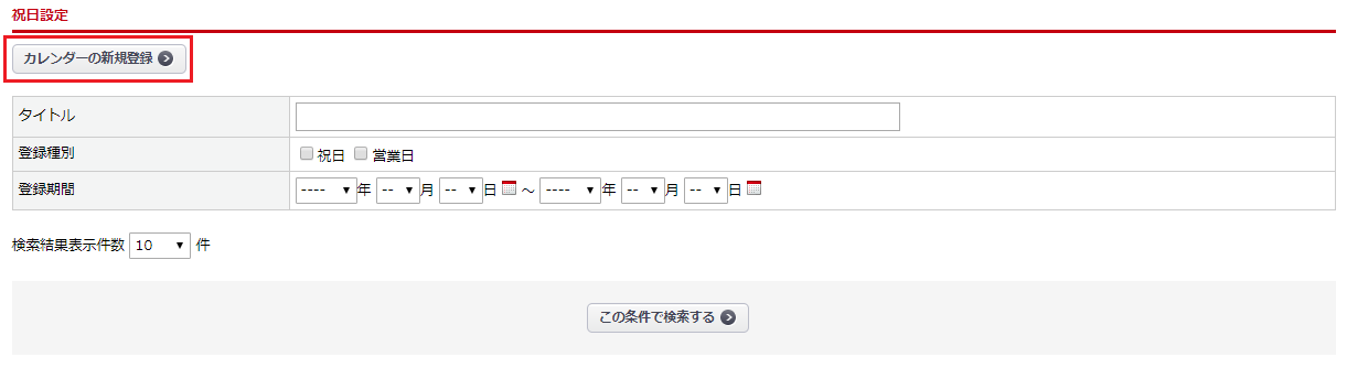 祝日・営業日の新規登録