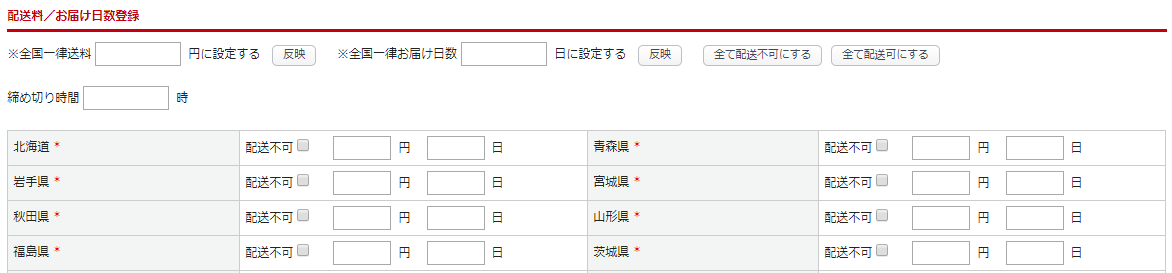 税込価格で入力してください。配送方法設定の詳細は<こちら>