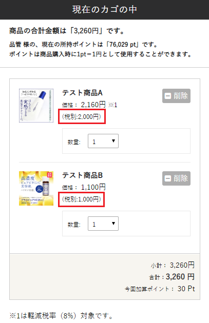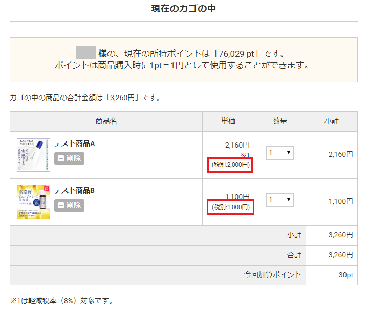 →複数税率の商品がカゴに入っている場合、クーポンは利用可能です。