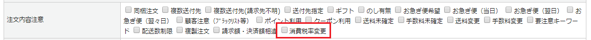 ・軽減税率設定:商品ごとの税率設定 ・消費税率:8 ・送料消費税率:10 ・手数料料消費税率:10 ※消費税10%の商品は<商品管理で個別に設定> |