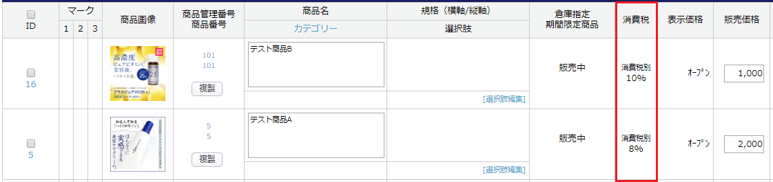 商品ごとの税率変更