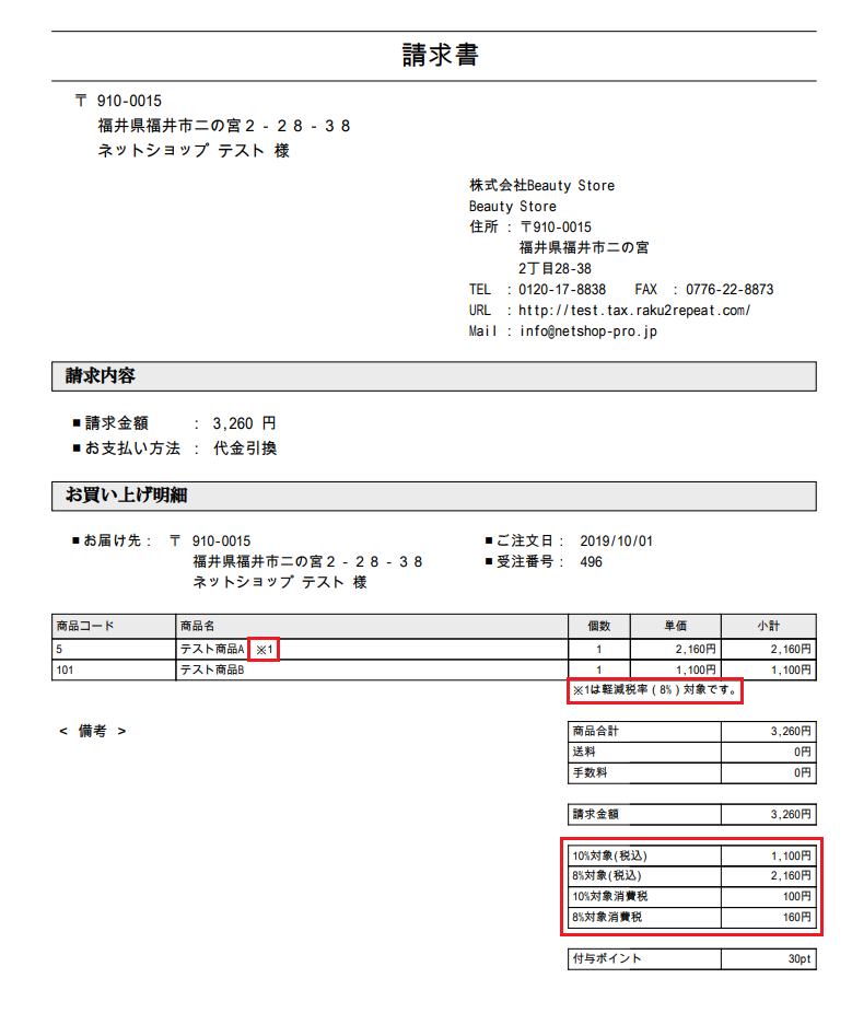 ※商品の税率が8%、送料、手数料の税率が10%のとき