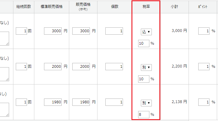 未入力の場合は、税率設定で設定されている消費税率が適用されます。