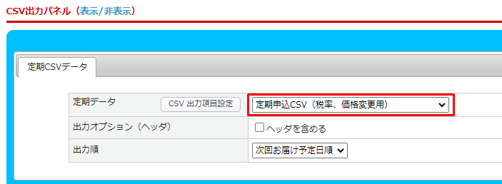 ダウンロード:受注>定期購入お申込み一覧>CSV出力パネル