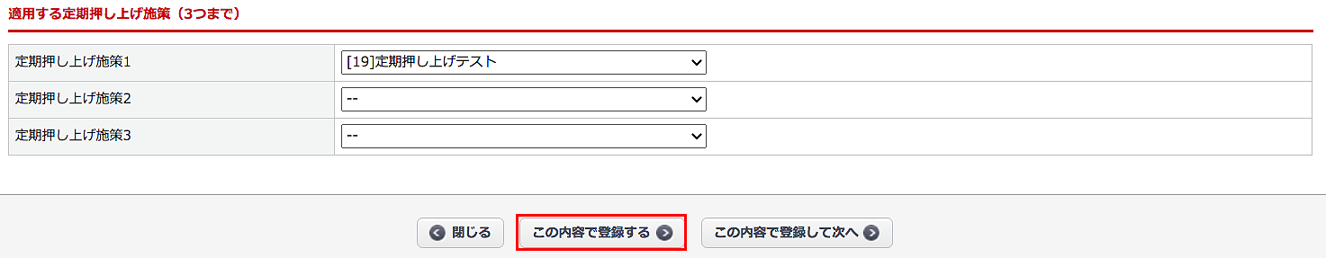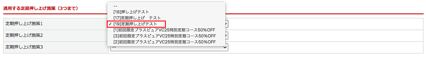 適用する定期押し上げ施策をプルダウンメニューから選択(3つまで設定可能です)