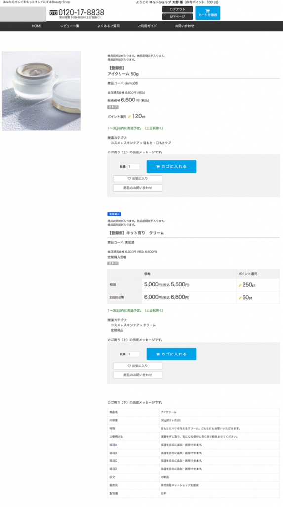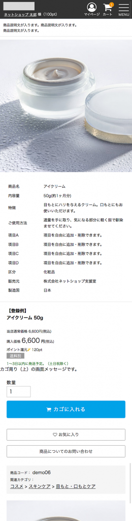 遷移先(PC)に設定された(http://ドメイン名/products/demo06/)ページに遷移されました。