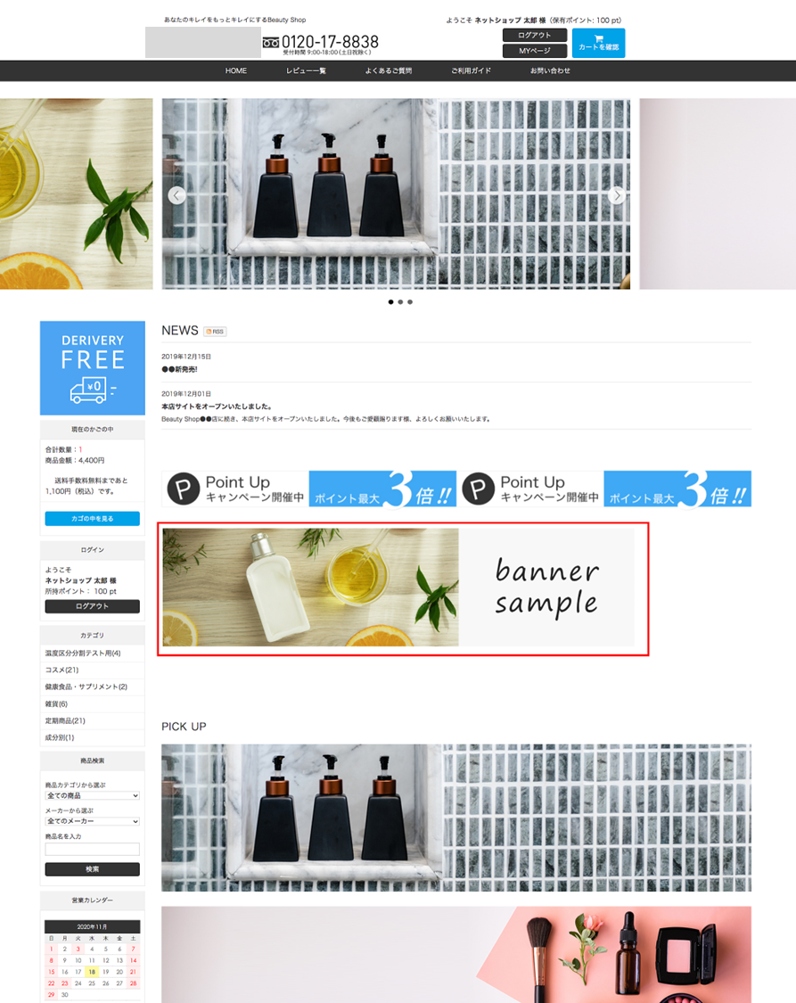 ※あらかじめ、バナー管理よりバナーの登録が必要です。