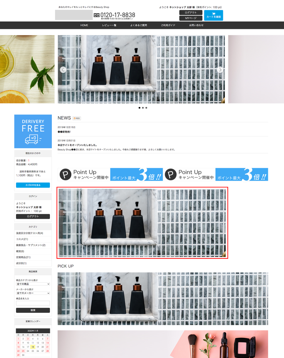 メインページに設定された差し替え対象となるバナー(例:bnr_sample_02)