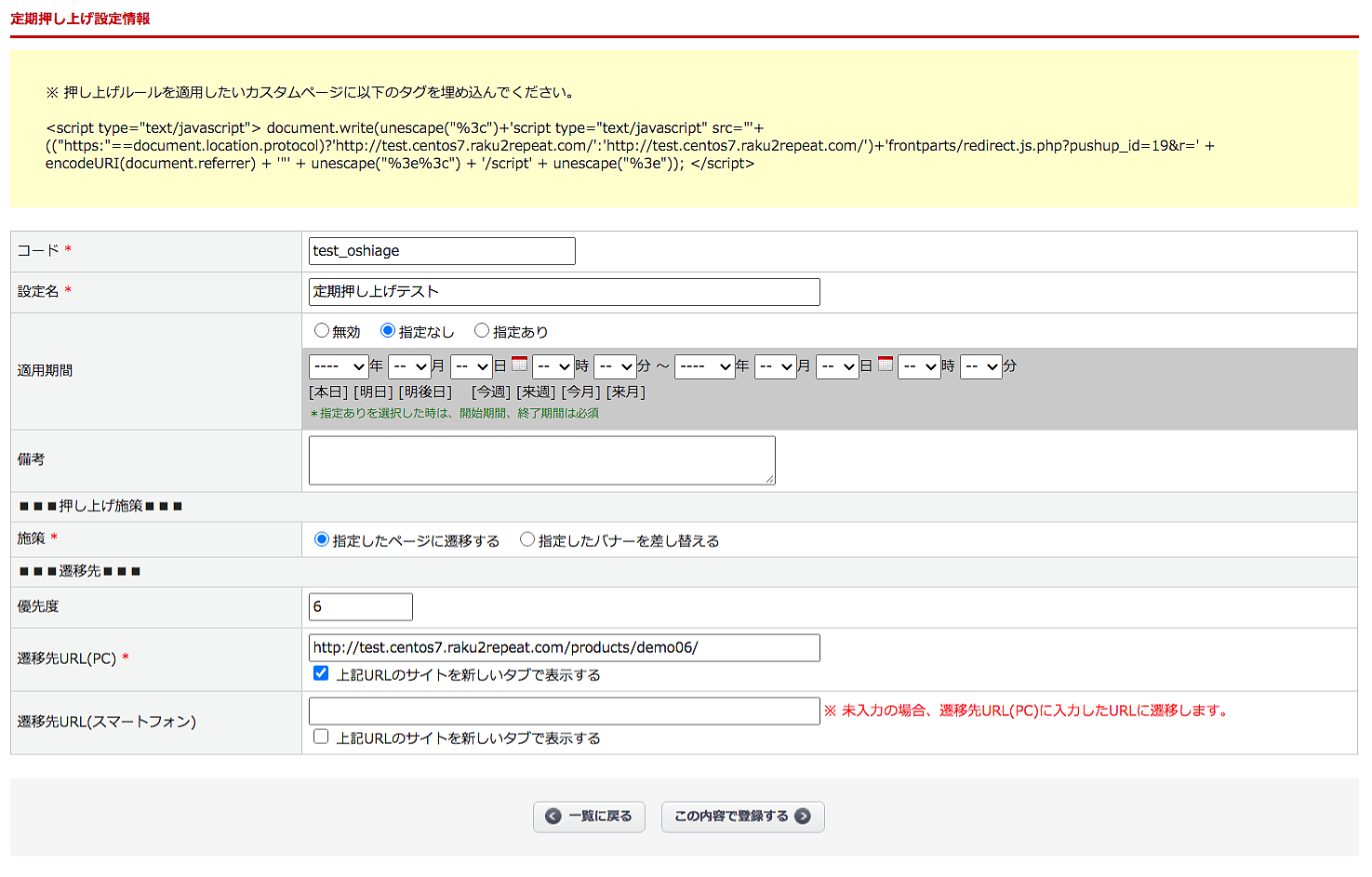 【定期押し上げ登録】ボタンから内容を登録してください。