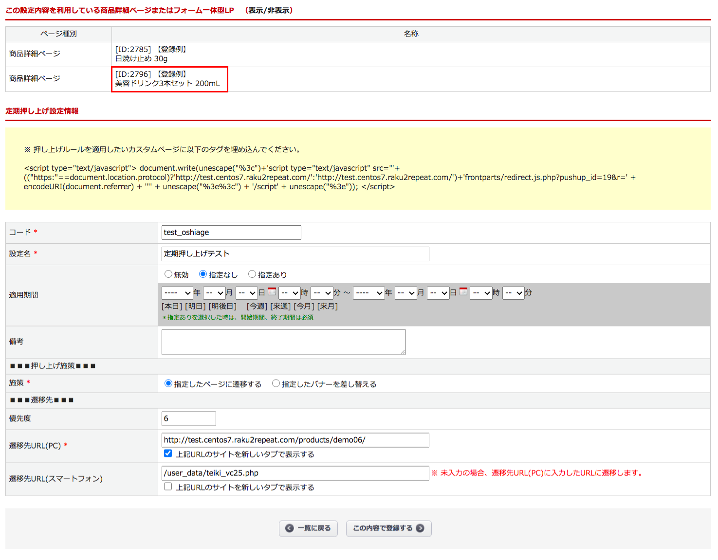 ■押し上げルールを適用したいカスタムページに以下のタグを埋め込んでください。