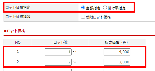 段階ロット価格の設定