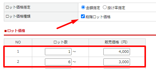 段階ロット価格にチェックを入れます。