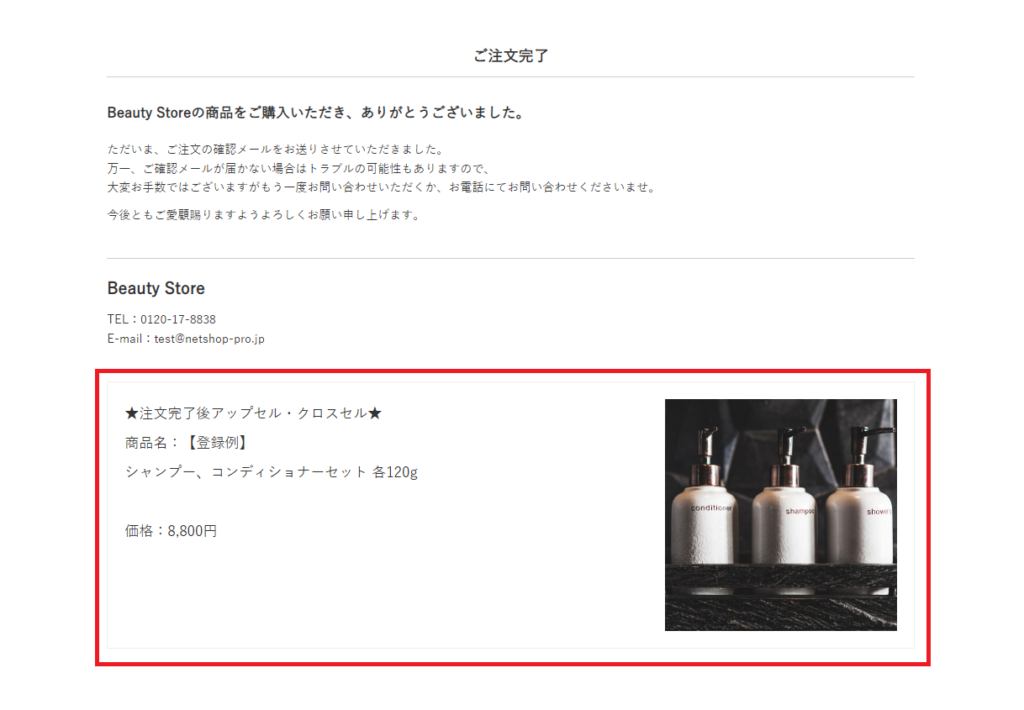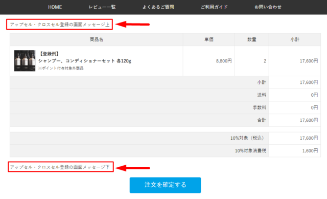 | 注文完了後のアップセル・クロスセル (確認画面) |