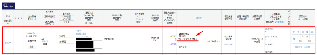 注文内容変更完了後、管理画面の受注一覧・受注詳細画面では受注商品が変更され、設定した受注ステータスへ移動します。