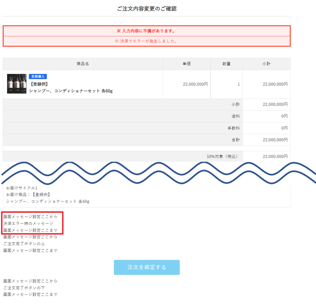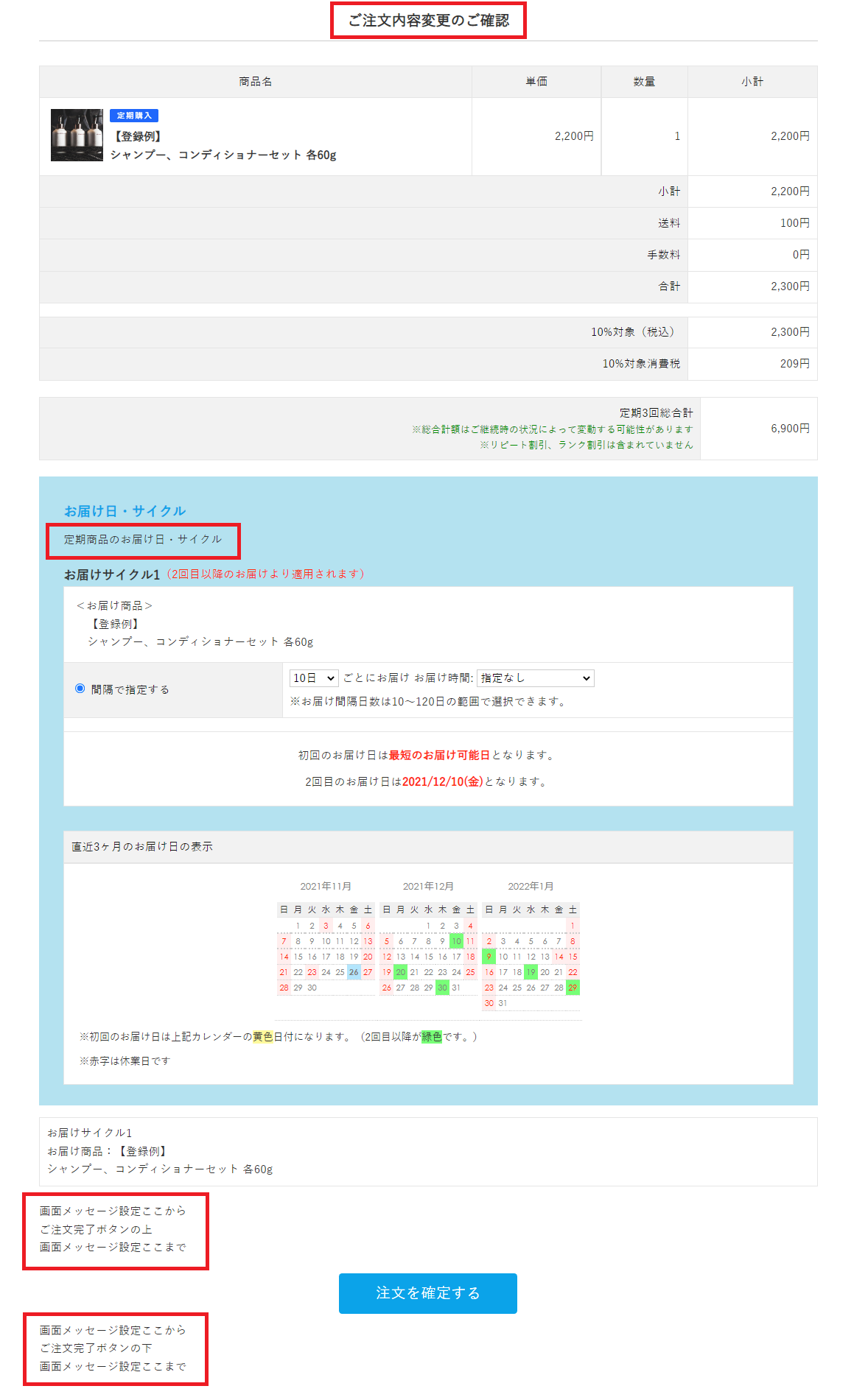 表示例:お届けサイクルの異なる定期商品にアップセル後の注文内容変更ご確認画面