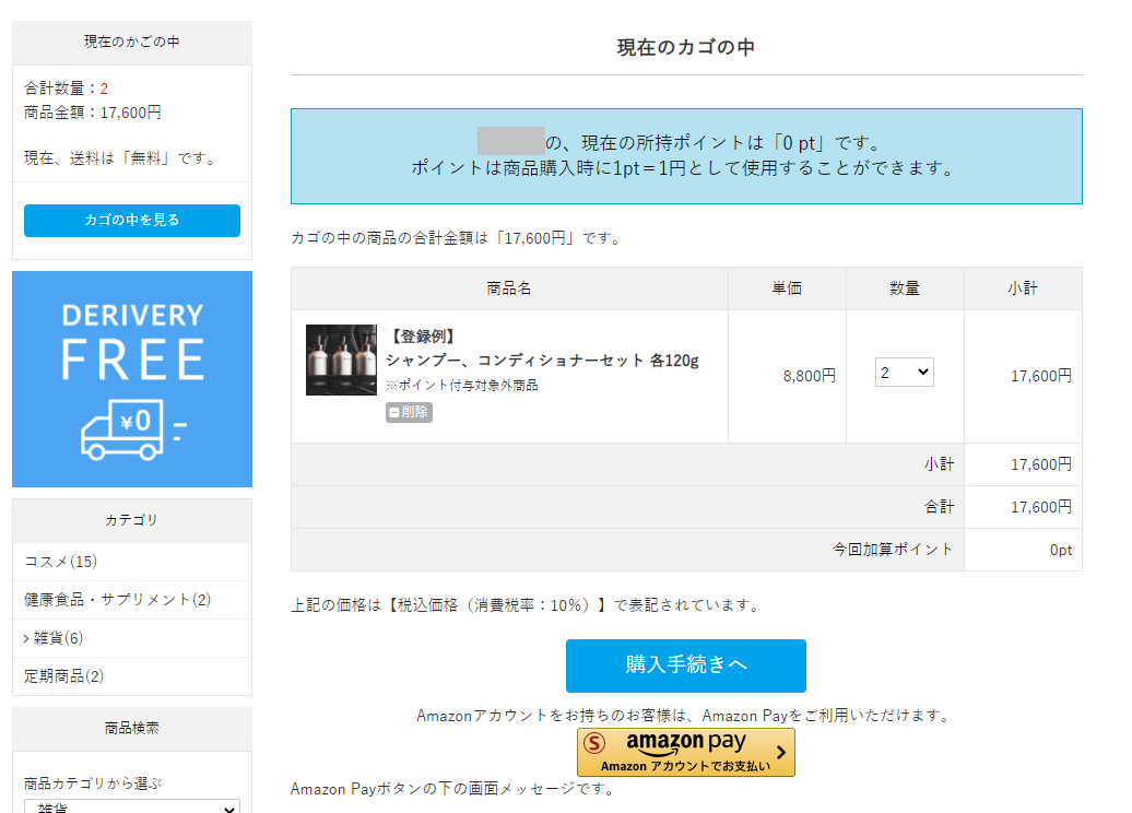 遷移後ページを「カート画面」に設定していた場合、注文完了画面に表示されるリンクをクリックすると、買い物カゴ画面へ遷移します。