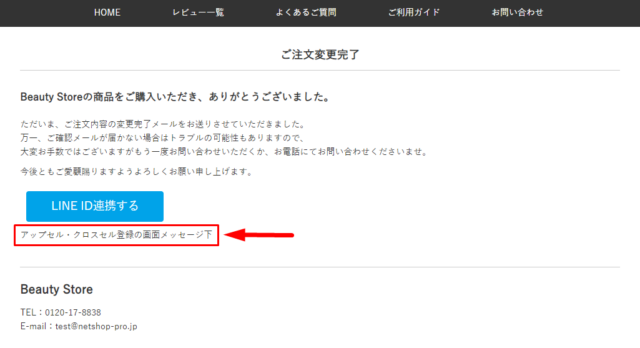 注文変更前の請求金額が0円(支払方法:無料です)の場合、注文完了後アップセル・クロスセルは表示されません。
