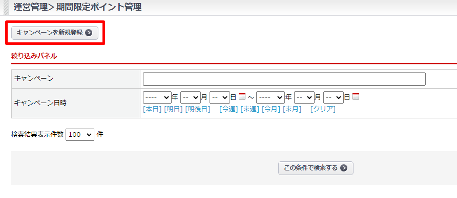 運営>期間限定ポイント管理 の詳細についてはこちらをご参照ください。