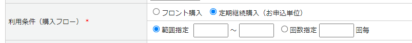項目「利用条件(購入フロー)」にて「定期継続購入(お申込単位)」を選択した場合について