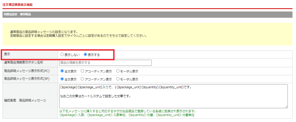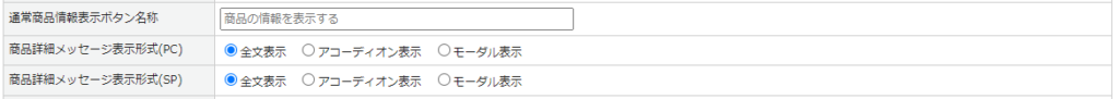 商品詳細メッセージ表示形式は、通常商品および定期商品それぞれで設定が可能です。