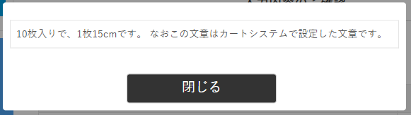 商品詳細メッセージがモーダルで表示されます。ボタンをクリックすると商品詳細メッセージが表示されます。