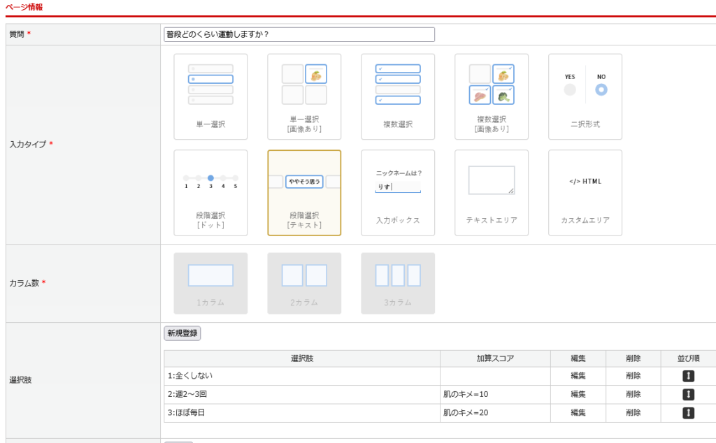 ※段階選択(ドット)と段階選択(テキスト)につきましては、選択肢の数に応じて自動で変化します。