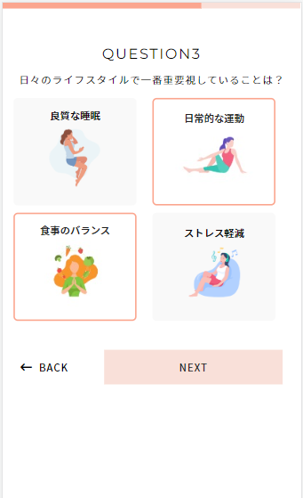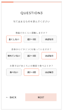 あらかじめパーソナライズのシナリオに紐づける「スコア」を設定し、質問の回答に応じて各「スコア」の加算(符号利用可)数を指定することが可能です。